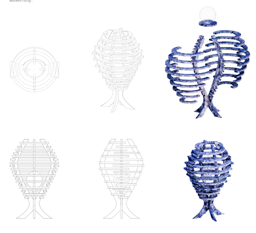 The design language was strongly influenced by our visit to Valencia’s City of Arts and Sciences. The building’s futuristic geometry, repetition, and rib like structural rhythm guided our approach to form and construction. We translated that architectural experience into the lamp by emphasizing modularity, clean structural lines, and a sense of movement, creating a piece that feels both engineered and lightweight while still communicating an emotional message.